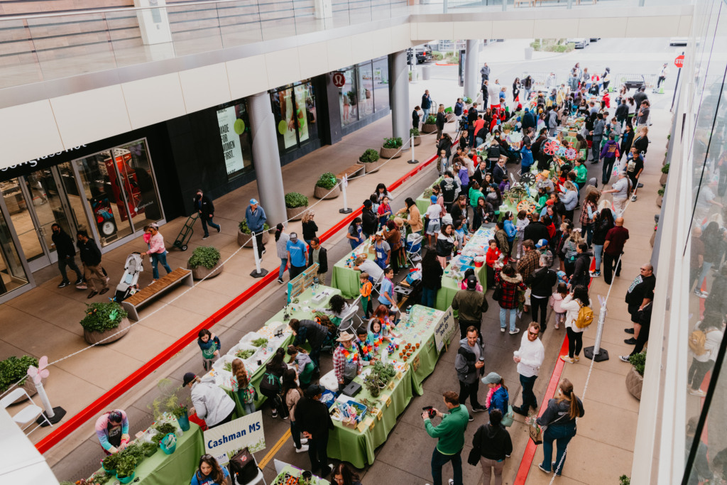 During the growing process, students also learn how to run their own businesses and create a school-garden-based business plan. At the Giant Farmers Markets, they’re matched with bankers who coach them through customer service and negotiation as they sell their garden-grown fruits and vegetables to the community.