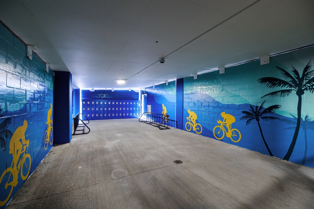 Bike storage is enhanced throughout Downtown Summerlin with additional locations near H&M and 1700 Pavilion encouraging people to bike to work at neighboring office buildings.