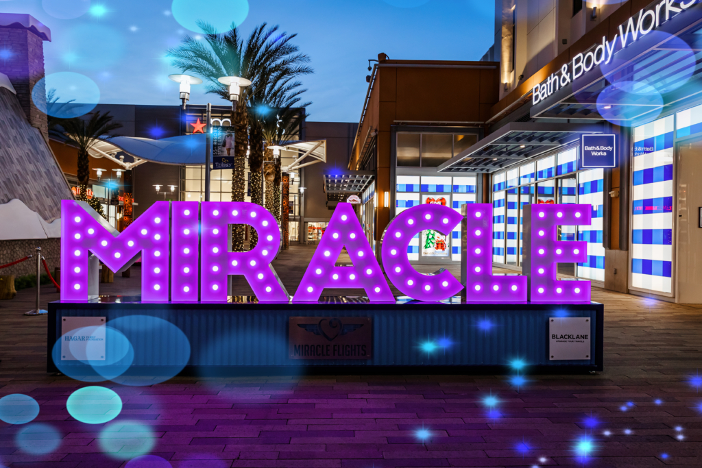 And returning this year is Lights for Flights — a fun activation featuring seven giant lighted words spread throughout Downtown Summerlin: LOVE, JOY, HOPE, PEACE, SOAR, MIRACLE, and I LOVE YOU. The perfect holiday background for Instagram-worthy holiday moments, the signs generate awareness and funds for Las Vegas-based national nonprofit Miracle Flights that provides free commercial flights to children who need assistance to reach life-changing medical care unavailable in their local communities. Guests have an opportunity to donate to Miracle Flights through QR codes on each sign.