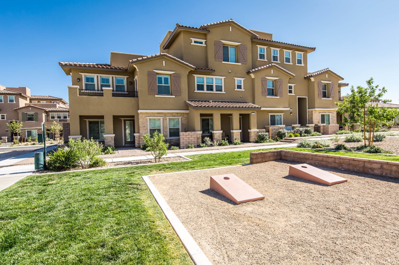 In The Paseos village, west of the 215 Beltway and situated on elevated topography overlooking the valley, is Santa Rosa by Lennar, offering townhomes from 1,438 to 2,209 square feet, priced from the low $300,000s. The hallmark of this gated neighborhood are rooftop decks that offer panoramic valley views.