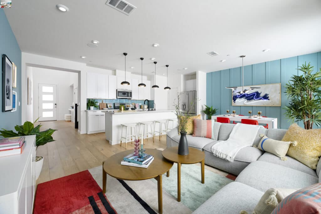 Moving west to the Redpoint Square district, Cordillera by Toll Brothers features four three-story townhomes with two available for immediate move-in and two available in March. Floorplans span from 2,019 to 2,154 square feet and are priced from the mid-$600,000s to the mid-$700,000s. At Vertex by Tri Pointe Homes, also located in Redpoint Square, one townhome is ready for quick move-in. It offers 1,790 square feet, priced from the high $500,000s.