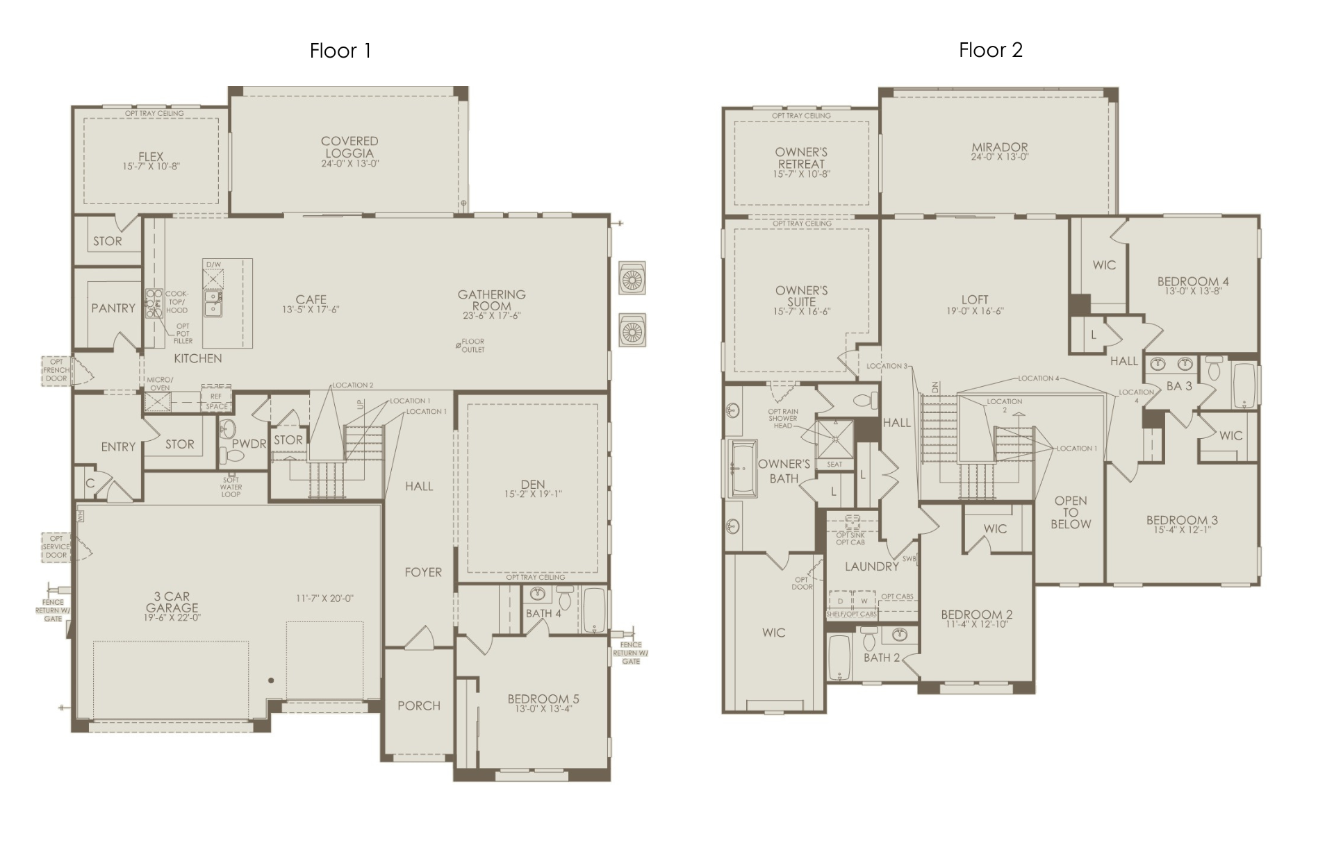Meet the Lucera two-story floor plan, a stunning new home design with open-concept gathering room, café, and kitchen for entertaining.