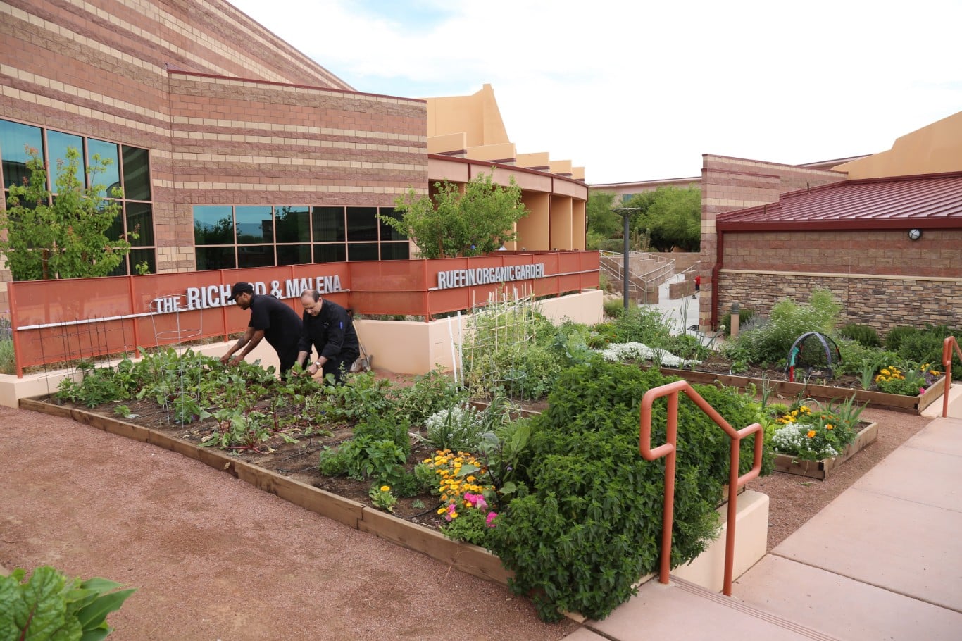 At The Alexander Dawson School, a private school in Summerlin, the Richard & Malena Ruffin Organic Garden is more than just a place of learning with an outdoor classroom and firepit, it functions as a built-in farmers market for the school producing a yearly harvest of over 10,000 pounds of produce. Every morning the school’s chef and kitchen staff pick fresh vegetables to incorporate into the meals served to students in the school’s dining hall.
