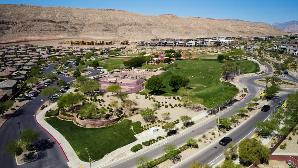 In addition to parks, trails and community centers, Summerlin is home to ten golf courses; 26 public, private and charter schools; a public library and performing arts center; Summerlin Hospital Medical Center; houses of worship representing a dozen different faiths; office parks; neighborhood shopping centers; and, Downtown Summerlin®, offering fashion, dining, entertainment, Red Rock Resort, Class-A office buildings, City National Arena, home of the Vegas Golden Knights National Hockey League practice facility, and of course, Las Vegas Ballpark.
