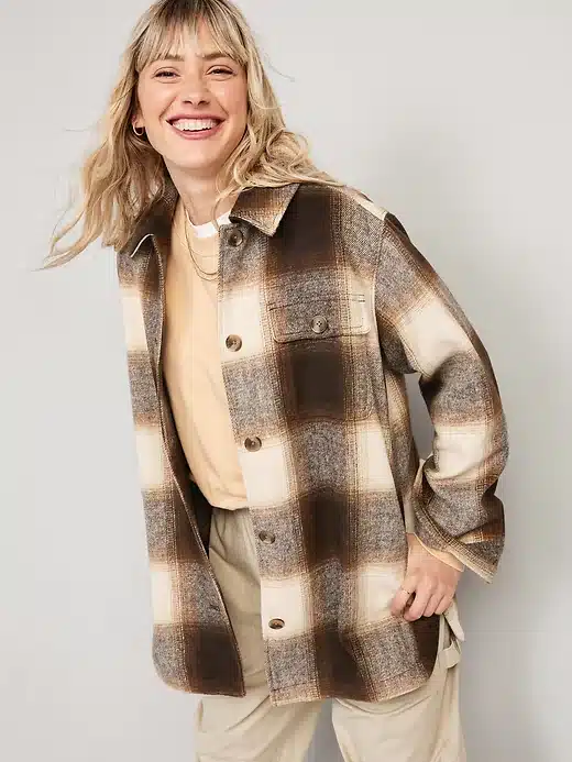 Old Navy is a go-to for classic and comfortable styles. This Fall, explore their collection of plaid shackets (shirt-jacket hybrids). The plaid pattern adds a touch of autumn charm, and the lightweight design makes it an ideal transitional piece. Throw it over a graphic tee for a laid-back vibe.
