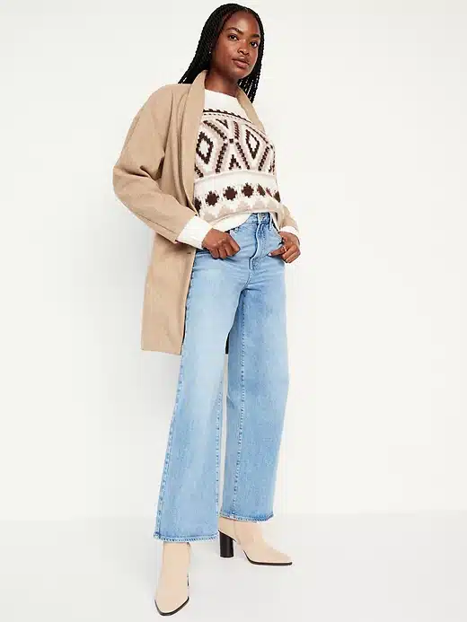 For those who love bohemian vibes, Free People is the go-to brand. Consider their oversized ponchos or duster cardigans – perfect for creating a free-spirited, boho-chic look. Layer these pieces over a simple tee and distressed jeans for an effortlessly cool ensemble.
